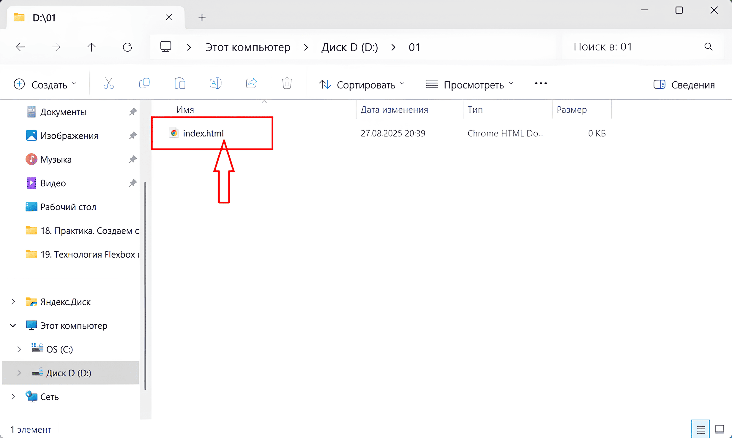 После сохранения файла (Ctrl+S) и обновления страницы в браузере (Ctrl+R), вы увидите текст