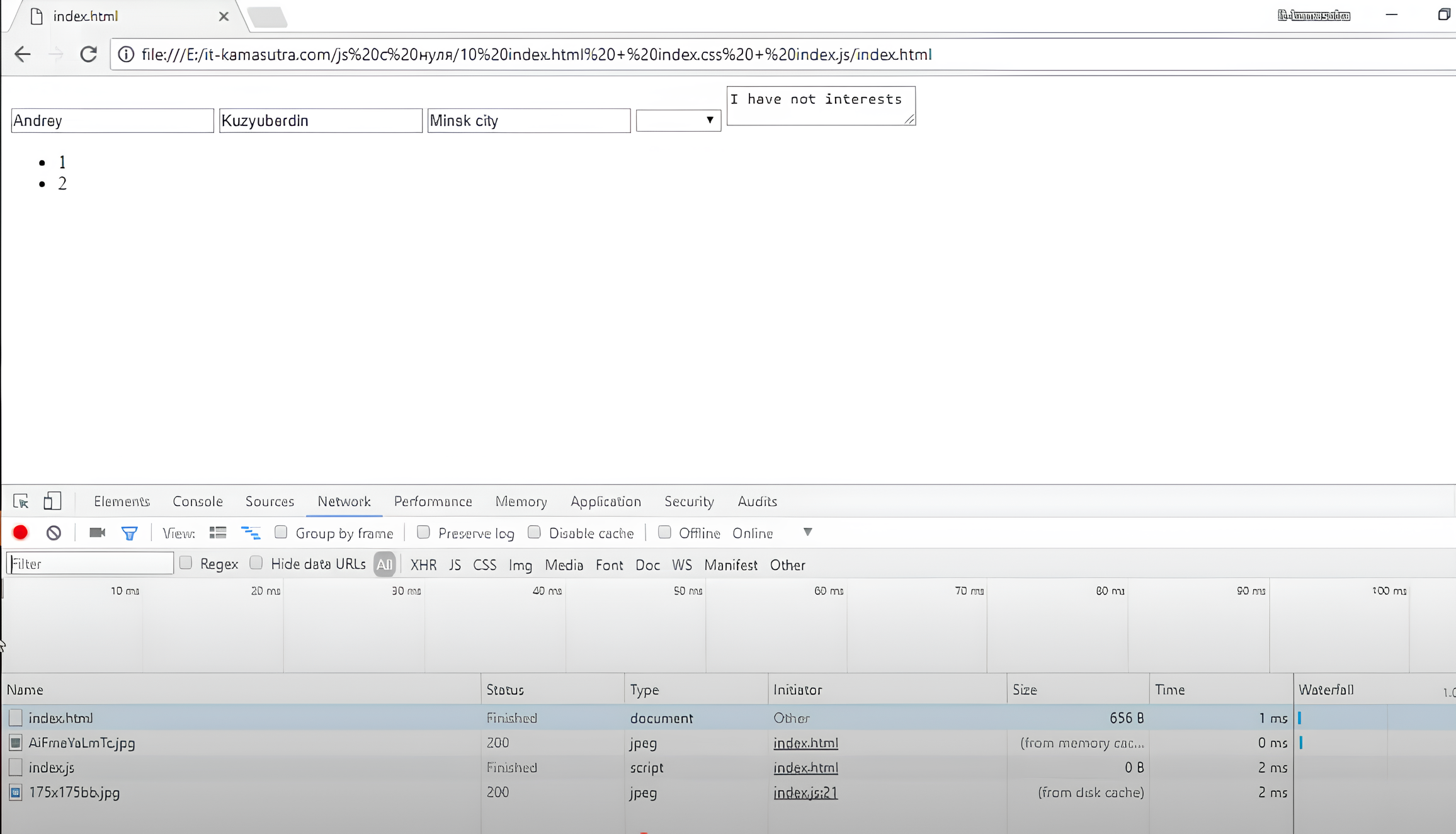 Посмотрим, что у нас получилось. Теперь мы видим, что подгружаются наши файлы: