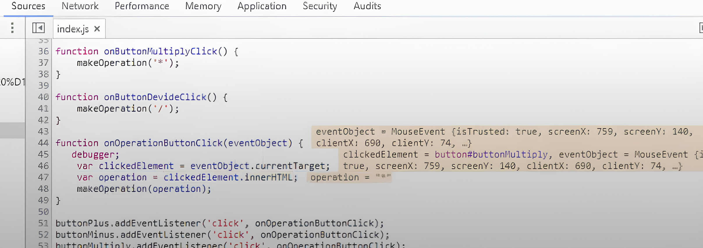 инструментами разработчика браузера выполнение автоматически приостанавливается на этой строке,