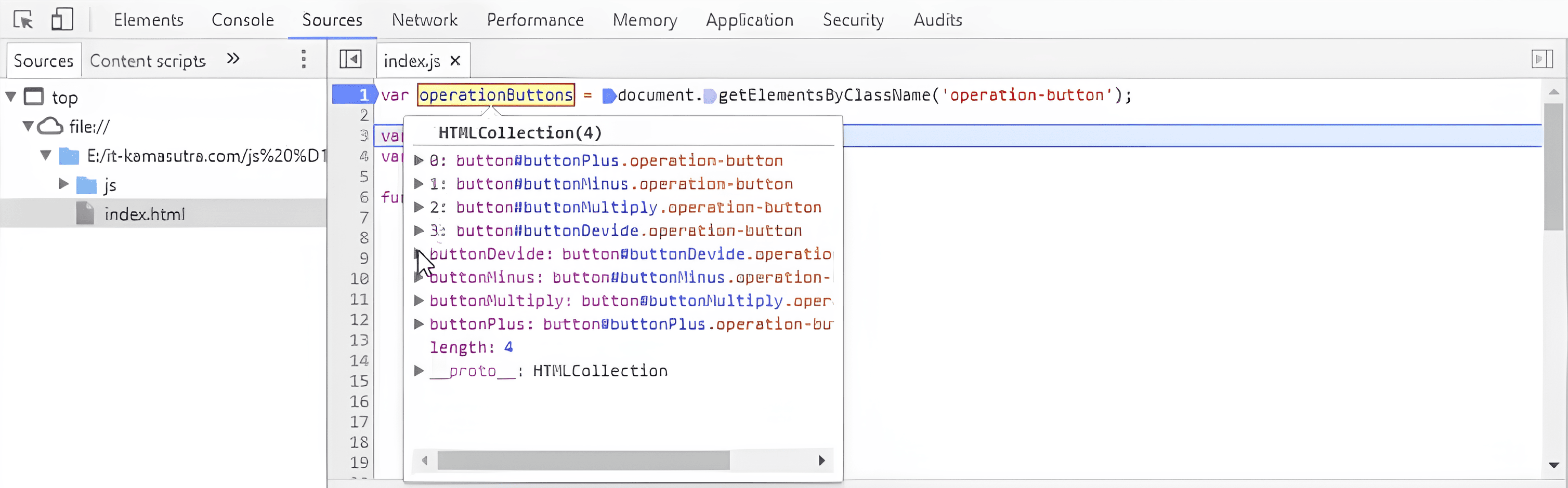 Давайте добавим всем нашим кнопкам операций один и тот же класс, например, operations-button.