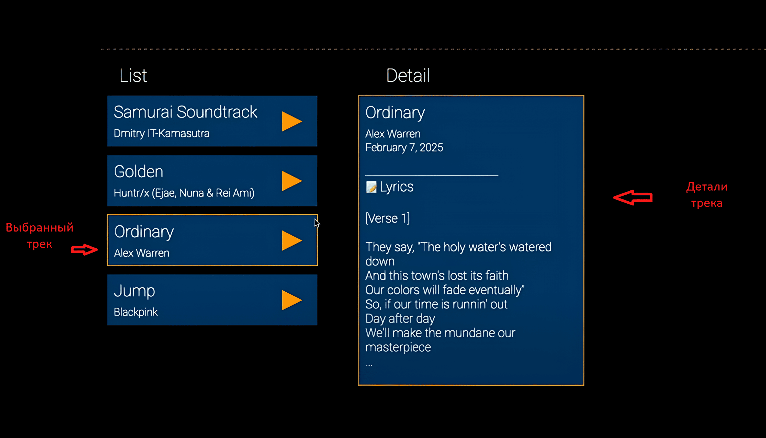 музыки, диалогов. Паттерн "Список и Детали" (List-Detail) — один из фундаментальных в