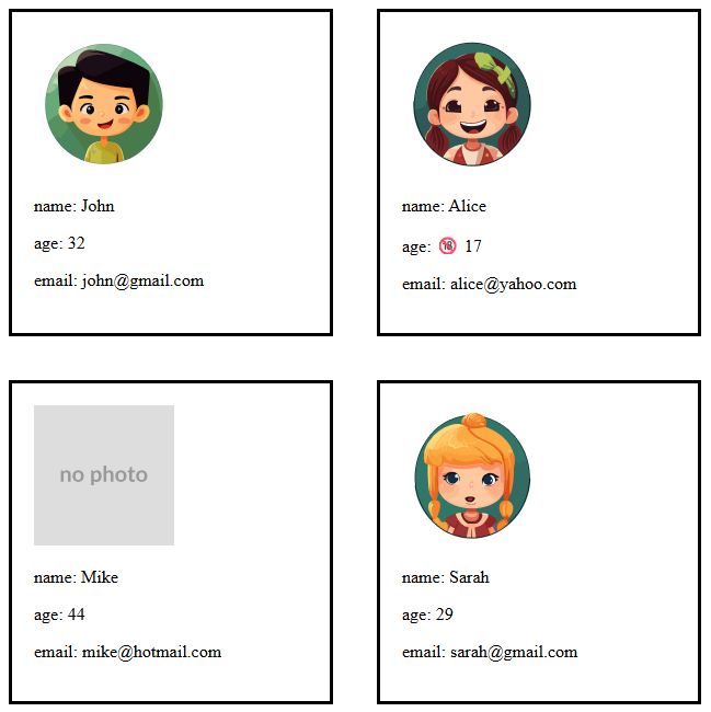 avatarне передан, показывай заглушку "no photo"
