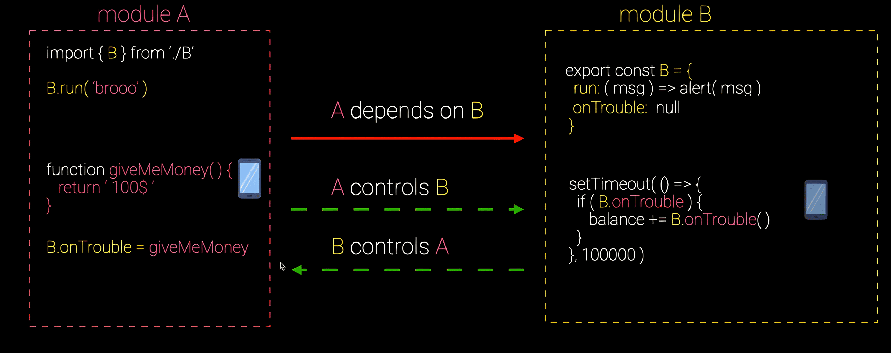 Главный принцип, который мы здесь соблюдаем, — это принцип информационного эксперта. Каждый компонент должен отвечать только за свою область знаний. Инверсия управления помогает нам этого достичь.