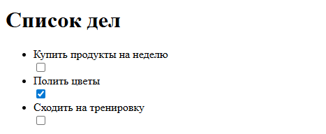 После выполнения задания на странице должен отобразиться список из трёх дел: