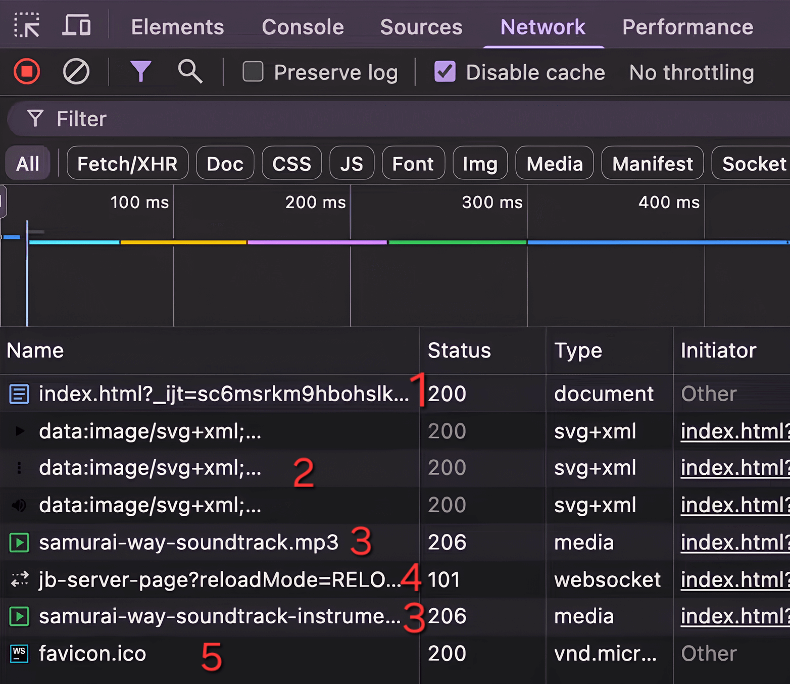 - Открываем вкладку Network (F12 → Network). Обновляем страницу: