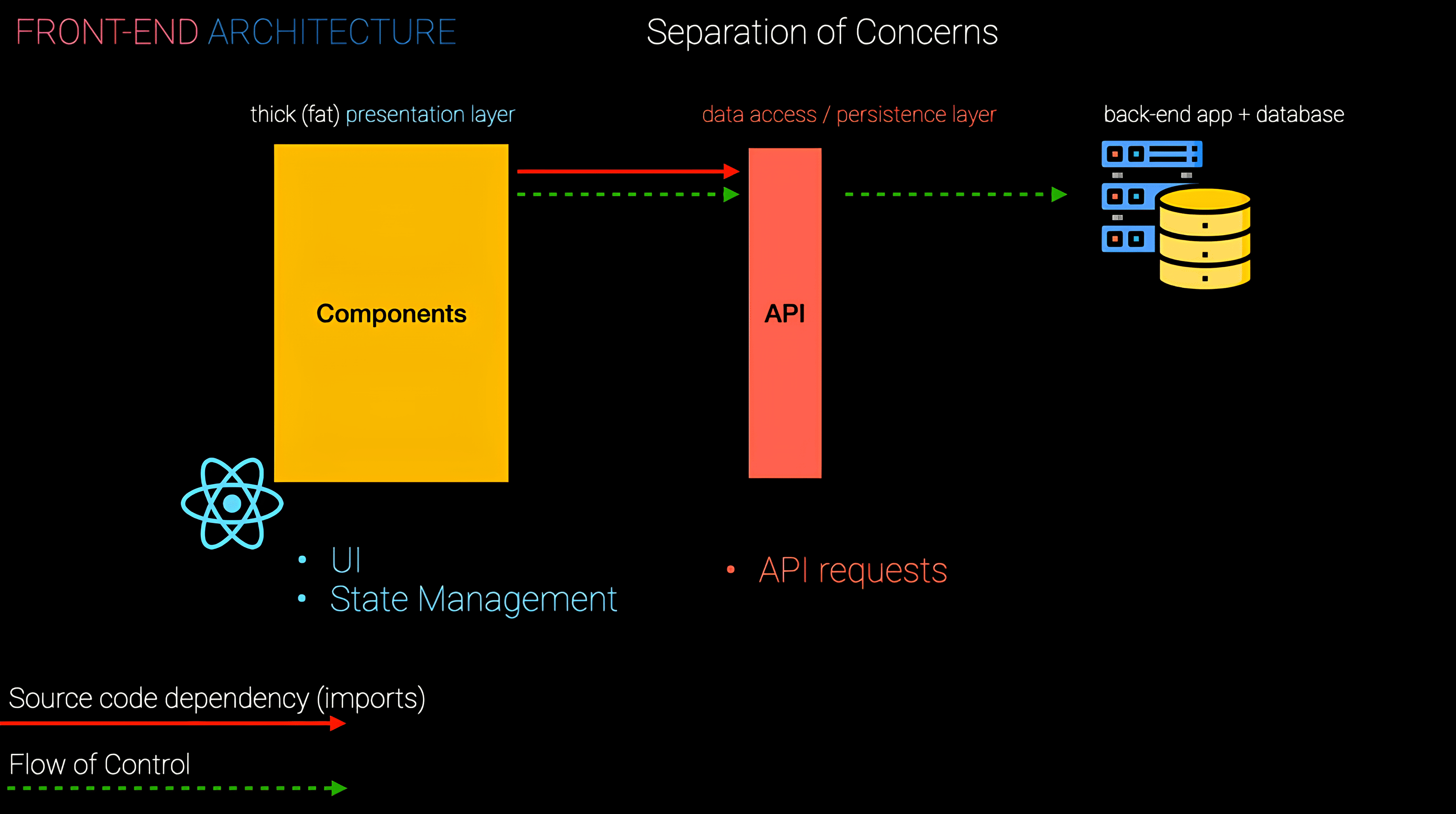 управление состоянием, сетевые запросы, бизнес-логика и т.д. Каждый concern должен решать одну