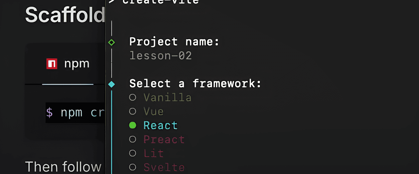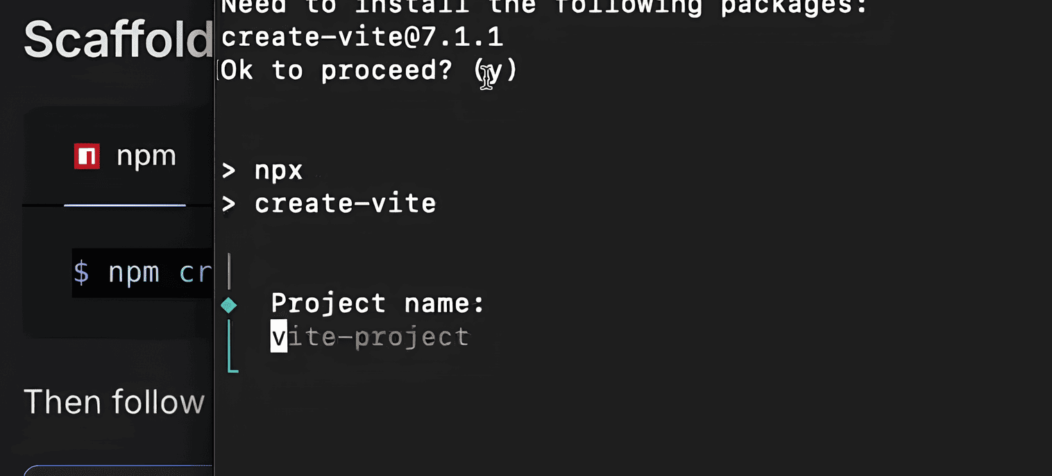 npxвместоnpm:npx create-vite@latest