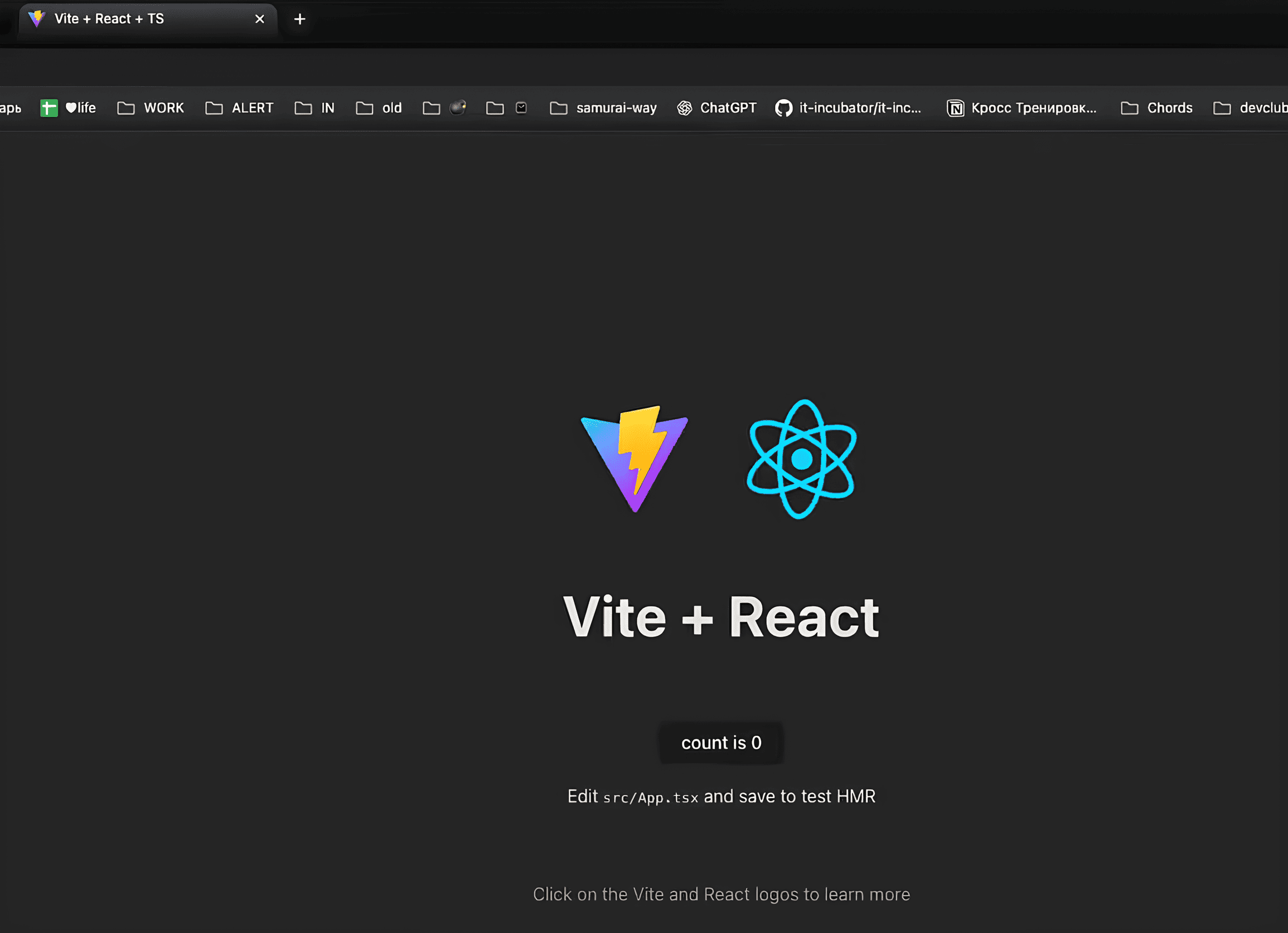 Перейдя по ней в браузере, вы увидите пример React-приложения со счётчиком. Кнопка работает: при клике число увеличивается 🚀