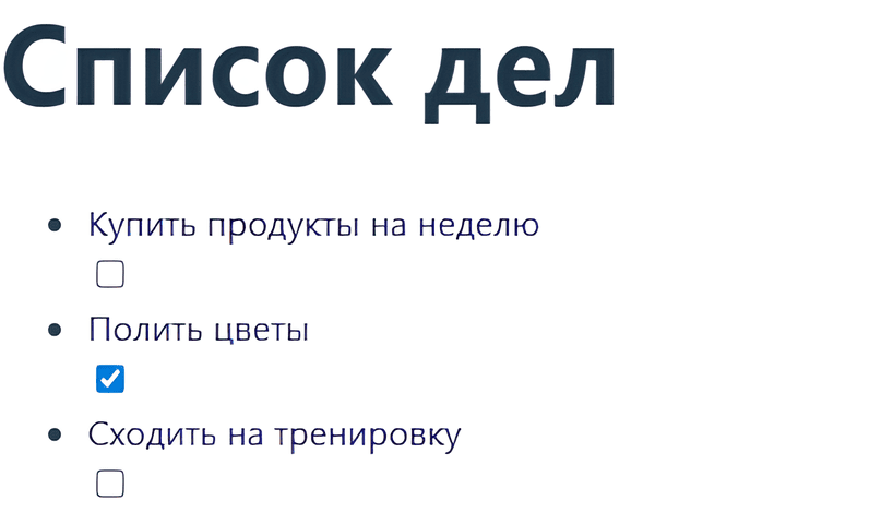divс названием задачиinputтипаcheckboxдля отображения статуса выполнения