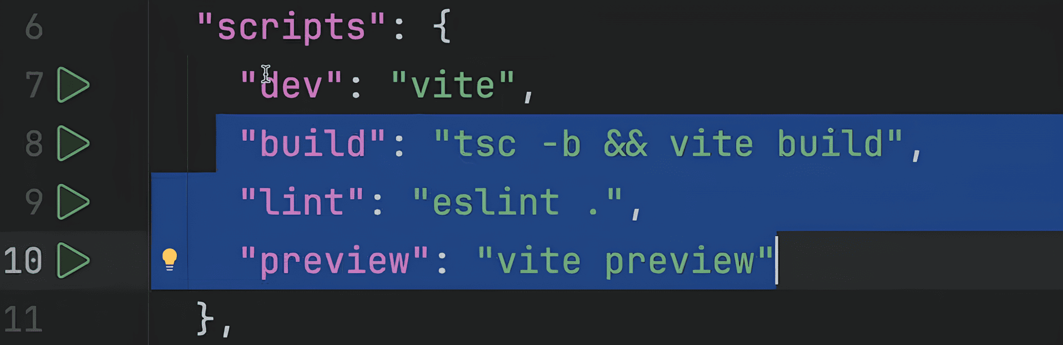 Vite для нас уже автоматически прописал в package.json удобный скрипт:
