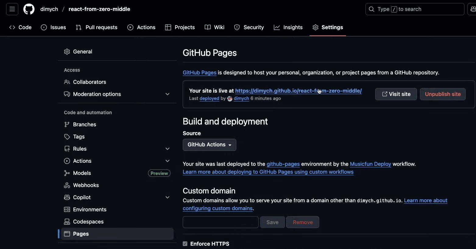 Итог: приложение доступно по домену GitHub Pages (поддомен GitHub), без покупки собственного домена.
