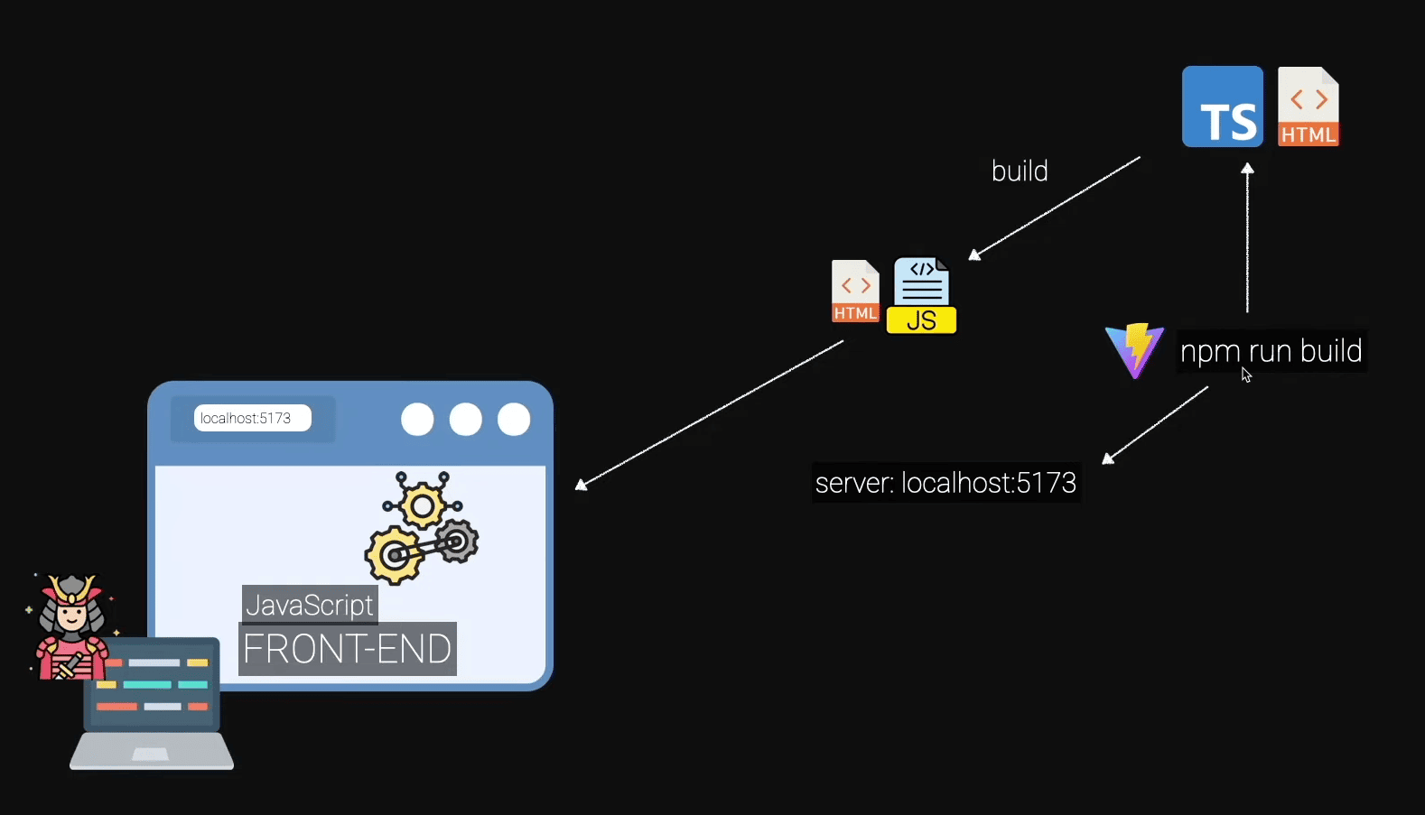 - Команда npm run dev: Когда мы запускаем эту команду, Vite берёт наши исходники и «на лету» транспилирует и собирает их.