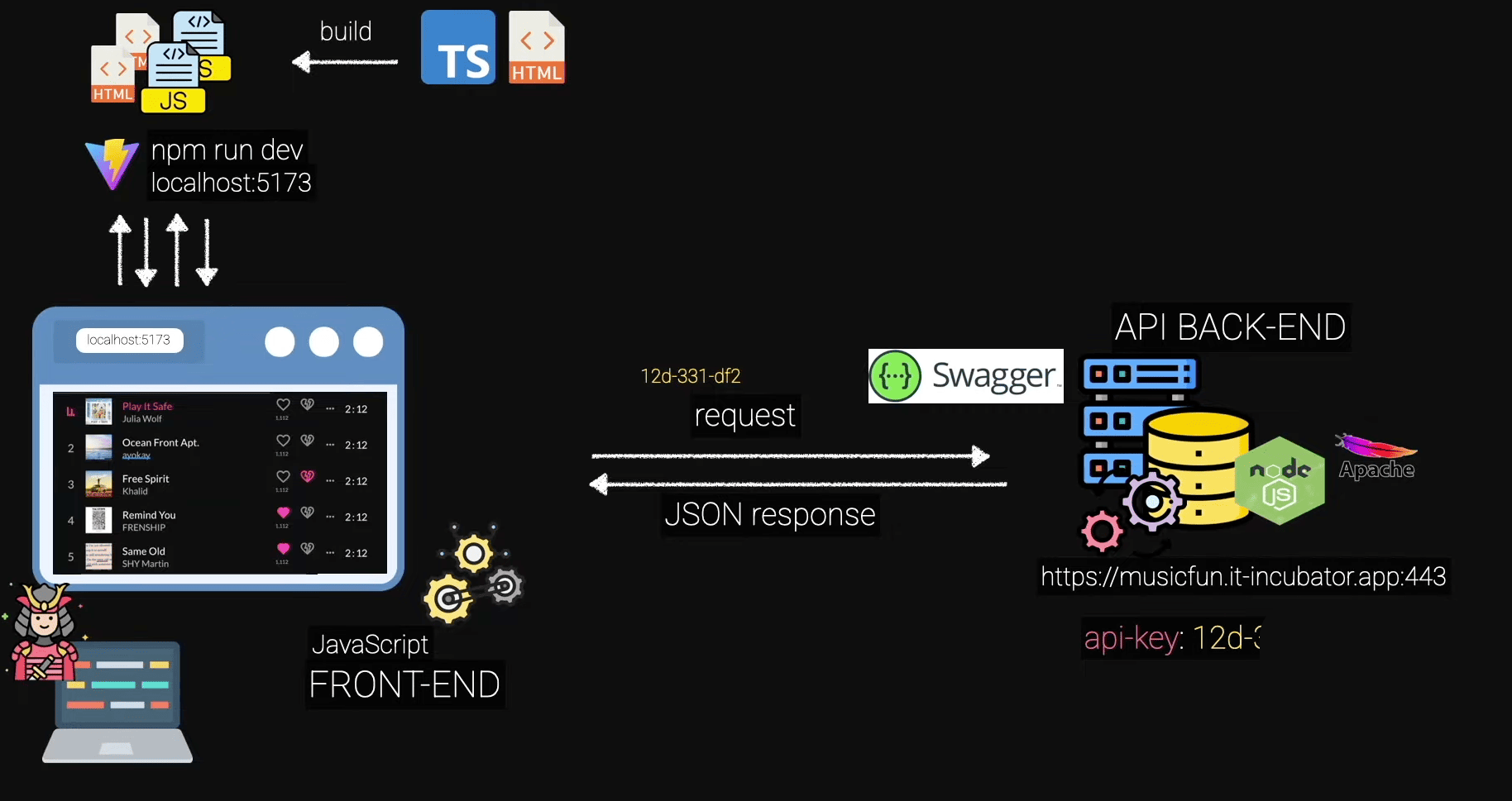 На этапе разработки (Compile Time) мы работаем с TypeScript и файлами.ts /.tsx (main.tsx, Playlist.tsx, index.ts). В этот момент TypeScript выполняет проверку типов, помогает определить структуру объектов и выявляет ошибки ещё до запуска приложения. JSX/TSX используется как удобный синтаксис для описания интерфейса внутри JavaScript-кода. После этого происходит компиляция (транспиляция): TypeScript-код преобразуется в обычный JavaScript.