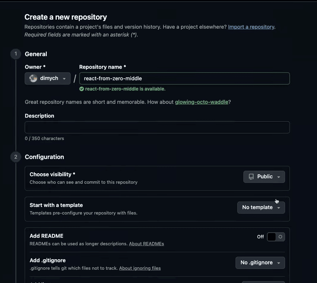 - Project name: Если вы хотите создать проект в текущей папке, введите точку (.).